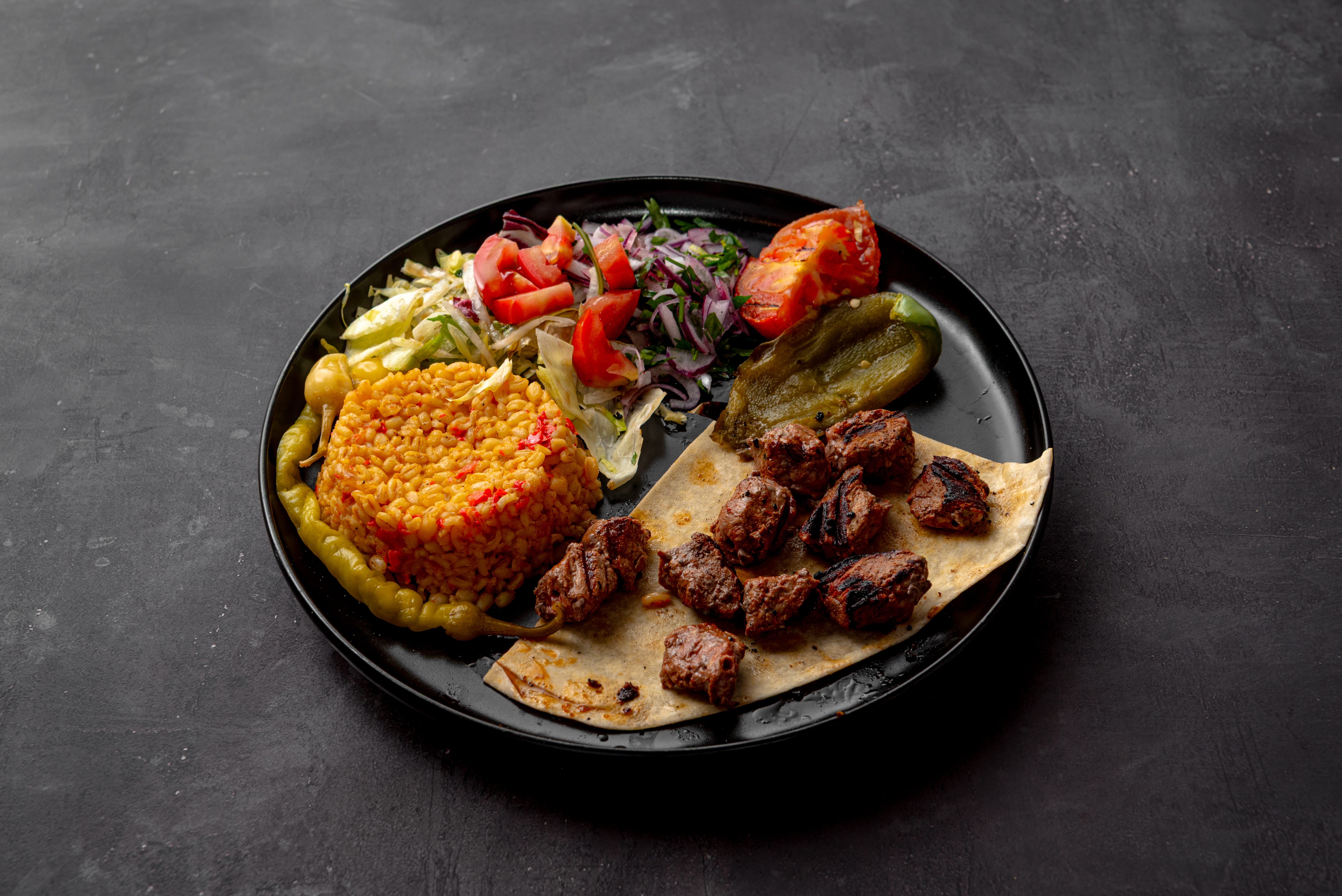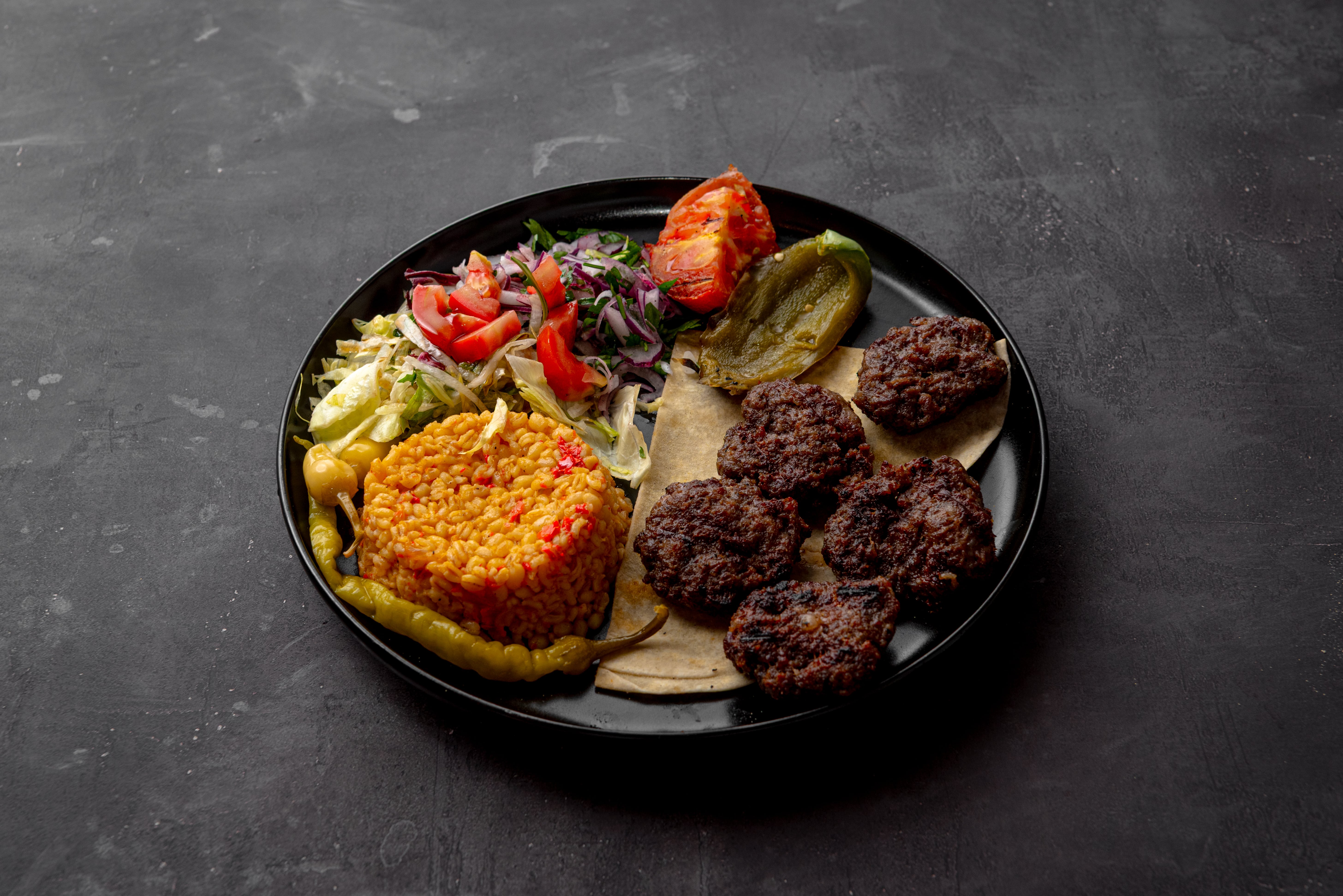 Beef meatballs served with lavash, onion and seasonal salad, grilled tomato and pepper. Side Options: Rice Pilaf or Bulgur Pilaf or French Fries