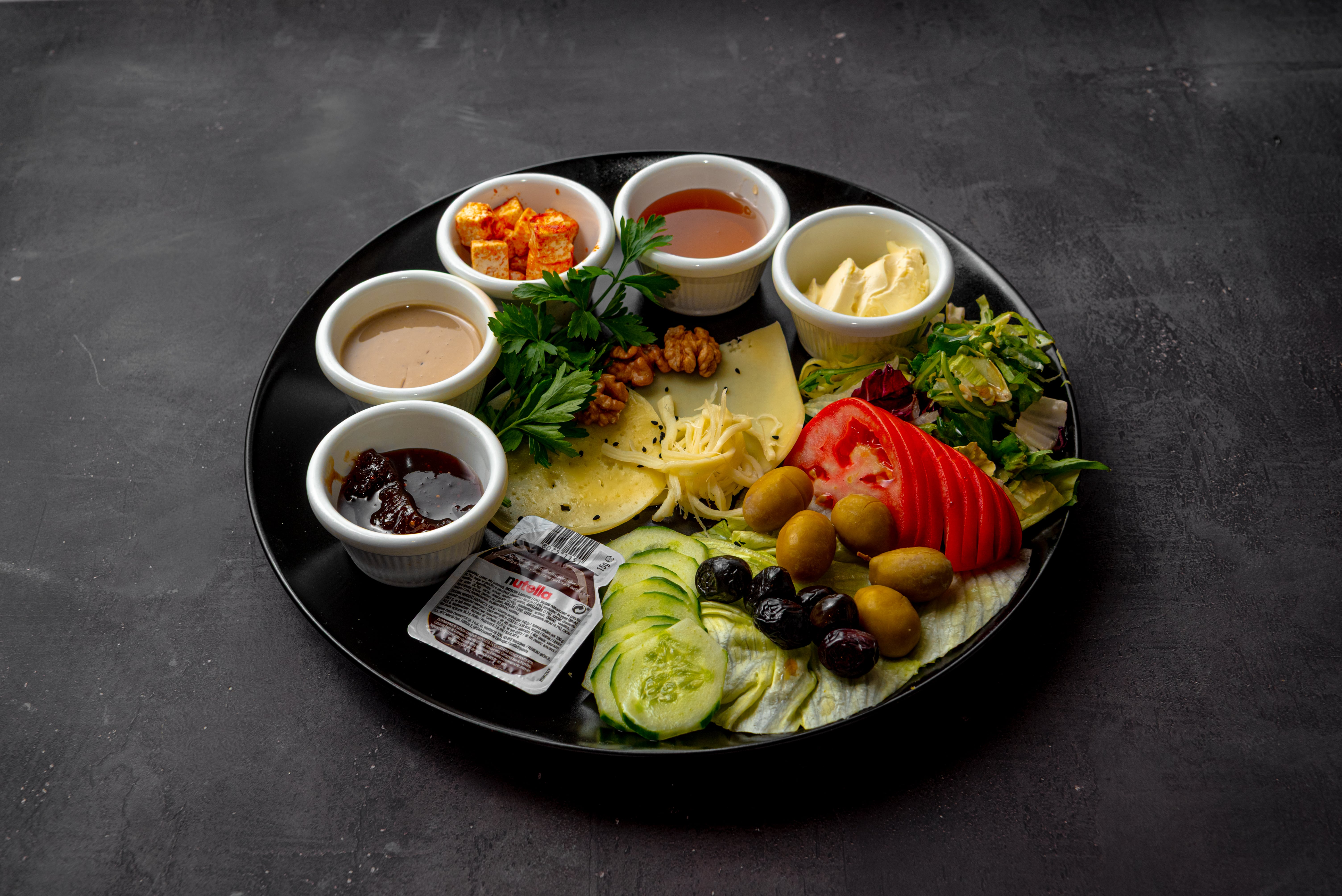 شرائح بيتي، صلصة بيتي، جبن حلومي، زبدة، زبادي.